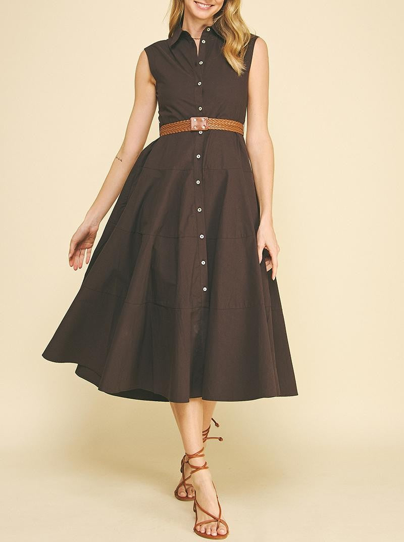 Solid Dress with Collared Neck